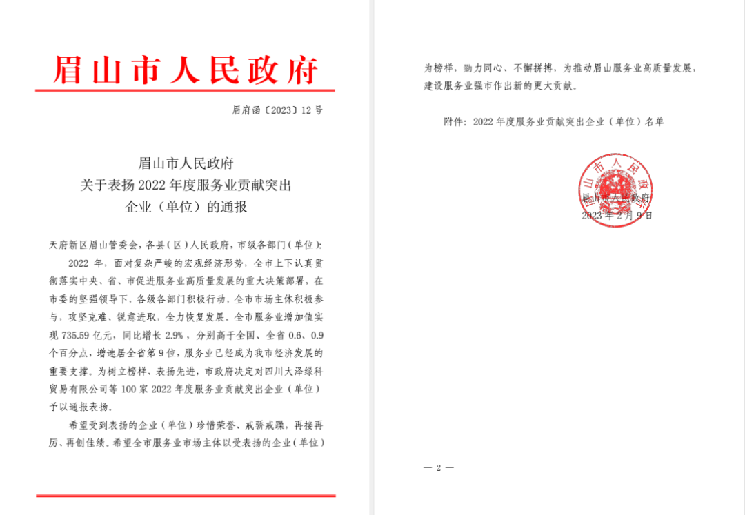 《關(guān)于表揚2022年度服務(wù)業(yè)貢獻突出企業(yè)(單位)的通報》