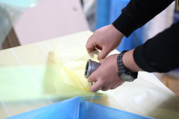 4、包裝過程---被包裝金屬和防銹膜中間,如有紙墊板、木類、塑料類隔板等阻隔材料,特別注意阻隔材料不能直接接觸金屬產(chǎn)品。以免阻隔材料含S、CL化學成分,影響防銹效果